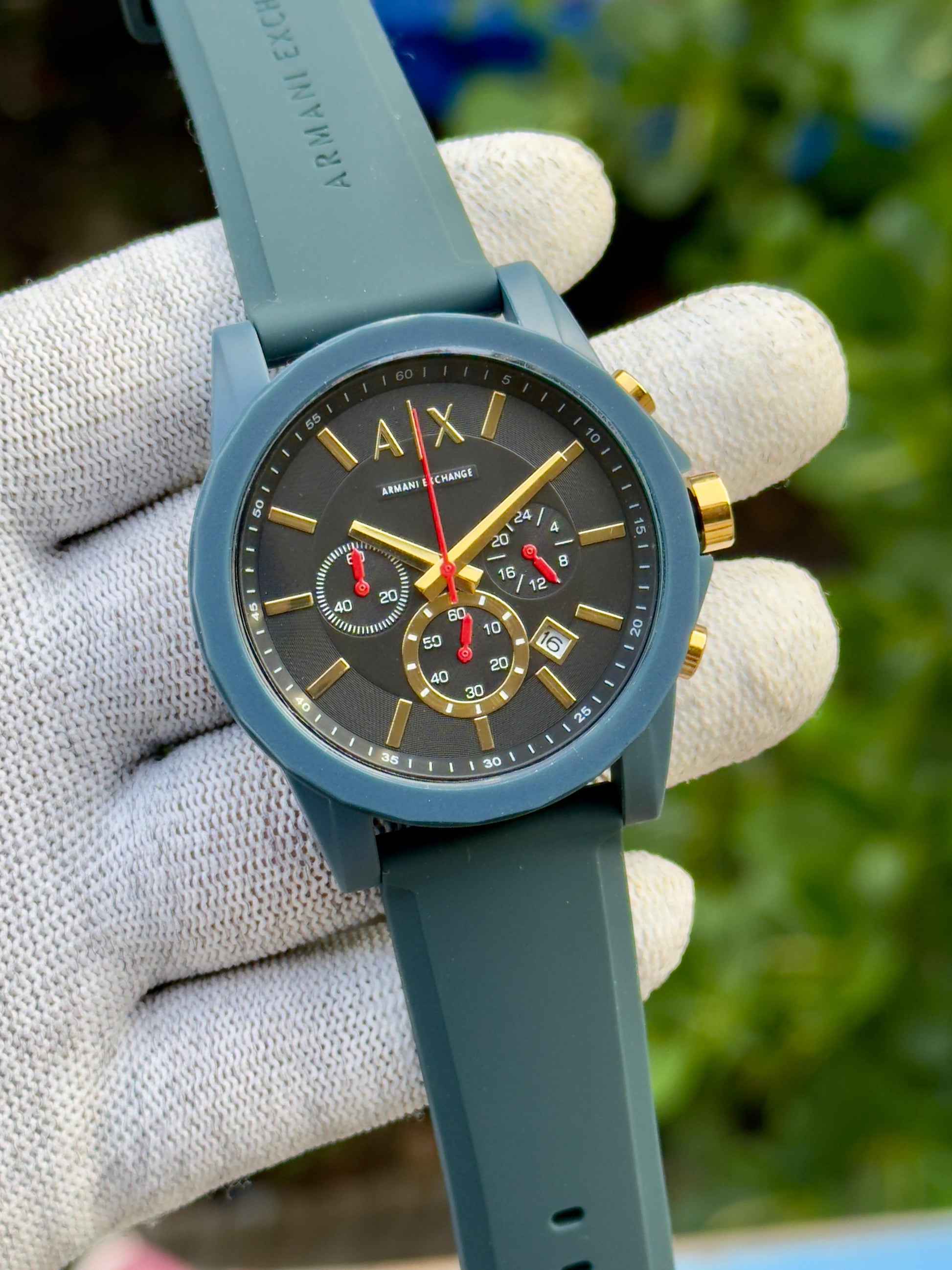 _This watch stands out with its bold blue finish, gold accents, and a premium chronograph design that looks effortlessly classy._